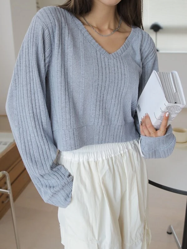 เสื้อครอปคอวีไม่มีลวดลาย 250฿