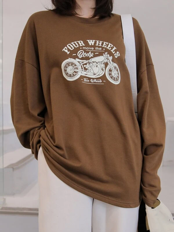เสื้อยืดทรงโอเวอร์ไซส์แต่งลายมอเตอร์ไซค์ 235 ฿